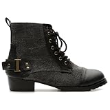Just ordered these boots and they are slightly different from the photo. Mine have splotches on the fabric part--so there are spots where the material is kind of a dark gray rather than the gray and white tweed material in the photo. It looks like they've been rained on, which I'm sure they weren't. I have a really hard time finding boots and I do like these a lot so I might keep them, but had they been splotchy in the photo I probably wouldn't have bought them in the first place. As another reviewer said, the leather on the toe is a bit shiny but I'm sure once they're broken in it will look fine. The fit is great. I'm usually a 6.5 in flats etc, so I ordered the 7 and if I adjust the laces I can comfortably wear them with warm socks. If not everyone's are turning out splotchy, I would recommend these. Also, I obviously haven't hit them pavement in them yet but the bottom is a little slippery.Buy Ollio Women's Winter Military Ankle Boots Lace Ups Back Buckle Low Heels Multi Colored Shoes Now
