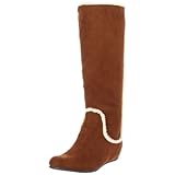 The tan color is pretty, the faux fur detail is flattering because it makes legs look slimmer, and the covered wedge heel creates an illusion of a flat heel. And it's comfortable, too! Good boot for fall and spring, but I wouldn't wear it on a winter day because it's not leather.